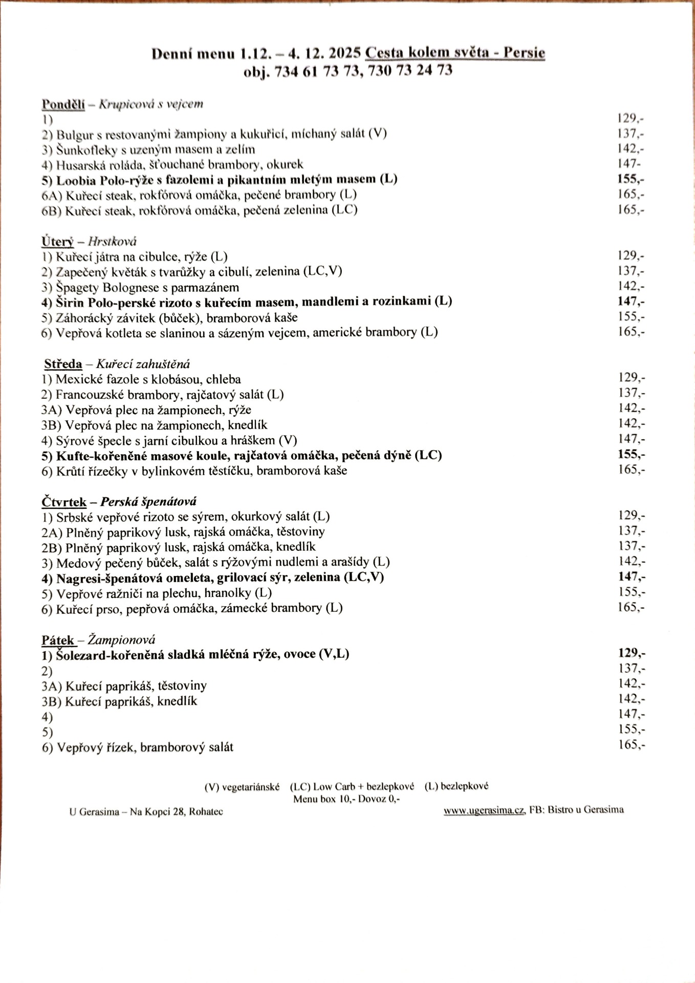 Obědové menu - Pouze rozvoz obědů Rohatec, Ratíškovice, Hodonín, Dubňany, Vacenovice